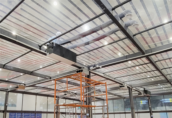 该项目涉及三个改造区域,分别是占地2304平方米的T2国际到达52号门内区域、占地2160平方米的GTC防疫通道等待区,以及占地820平方米的集中上车区。金鹏环保结合空间容量和区域功能特点,通过多点位布局移动扫描式静态杀菌消毒技术系统的“中央空调回风净化系统”和“全热交换新风系统”,打造内外气流循环系统。