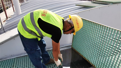 玻璃钢水箱内部犹如蒸笼。施工人员正蹲在地上手工糊接预留管道,短短几分钟的劳作就足以让面罩下的脸颊汗水淋漓。刷涂树脂、糊接玻璃丝毡布、压实去除气泡……如此繁复的工序,在她灵巧的手中不断重复,直到达到规范的质量标准。